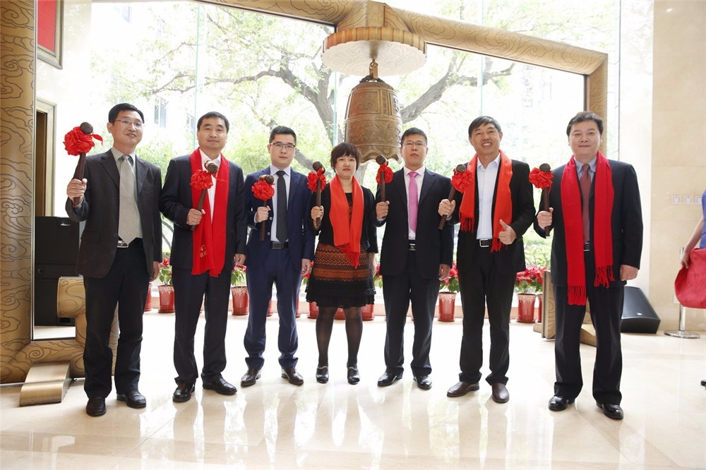 (中间:EBET易博公司董事长刘国鹰先生,左一:西班牙PE公司化勇先生,左二:EBET易博北京经销商总经理胡斌先生,左三:卓中资本于洋先生,左四:EBET易博公司董秘吴海龙先生,左五:桐乡市人民政府副市长潘敏芳女士,右五:桐乡市科技局局长卢爱驰先生,右四:桐乡市委人才办副主任卜掌浩先生,右三:桐乡市人民政府秘书张丽萍女士,右二:桐乡市科技创业园主任倪勤华女士,右一:国联证券机构业务负责人姜亦民先生)